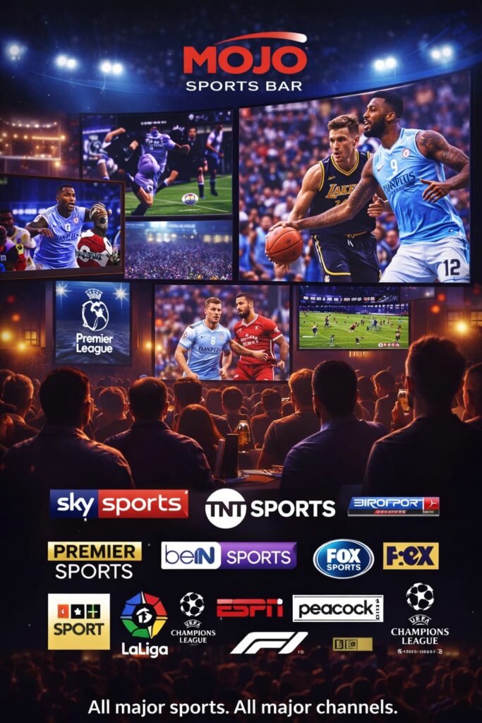 Mojo Sports Bar is known for its energetic matchday atmosphere, passionate fans and friendly staff. Whether you’re supporting your team, watching a derby or following an entire sports weekend, you’ll always find a great crowd and the perfect setup for live sports.