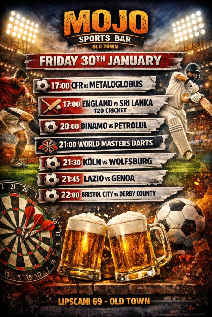 Mojo Sports Bar is one of the best sports bars in Bucharest, located in the heart of the Old Town, on Lipscani. If you are looking for a place to watch live football in Bucharest, enjoy big matches, cold beers and a real British pub atmosphere, Mojo is the place to be.